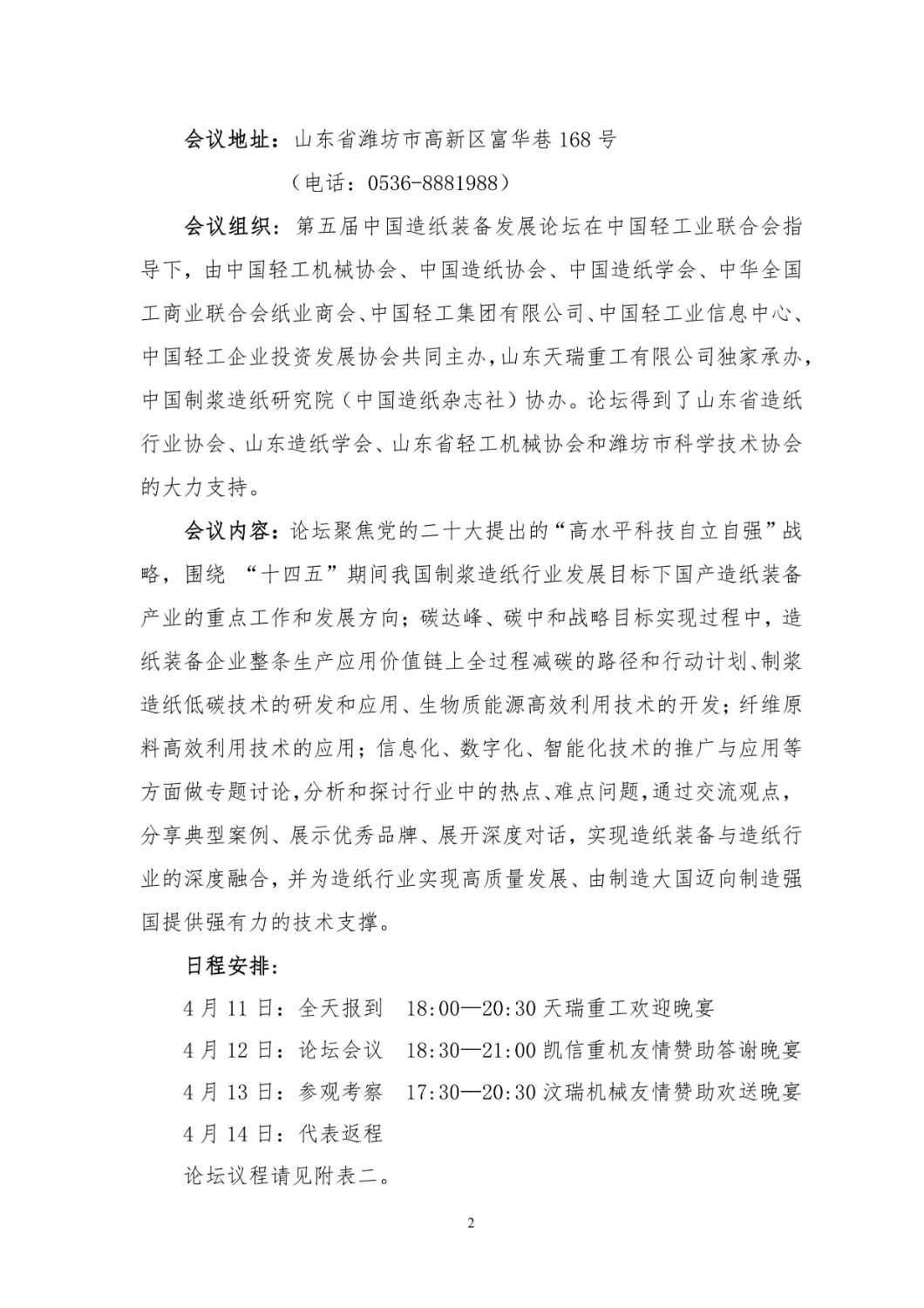 “第五屆中國造紙裝備發展論壇”將于2023年4月11-14日在山東濰坊舉辦。